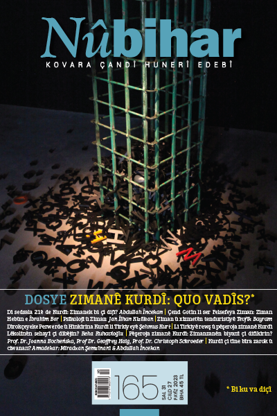 Nivîsa Edîtor Ji jimara 165an merheba! Di nava du mehên dawîn de em besdarî pêsengehên pirtûkan ên Tetwan, Batman, Stenbol, Îzmîr, Riha û Mûsê bûn. Dema ev kovar bikeve destê we, di meha Kanûnê de însalah emê li pêsengeha Diyarbekirê bin. Ji bo van pêsengehan me gelek kitêbên nû derxistin û gelek çapên dubare çap kirin. Li ser kitêbên nû hê jî xebat û amadekariyên me dewam dikin. Di van rojan de me salnama Nûbiharê ya 2024an jî derxist. Wekî gelek xwendevan dizanin ev çend sal in em salnamayek seranser bi Kurdî diwesînin. Ev jimara li ber destê we jî di van sertan de derket. Ji ber sedemên min li jor gotin, amadekirina vê kovarê wext girt, li gor hesabê me dikir derengtir derket. *** Di vê jimarê de, bi edîtoriya Abdullah Încekan, bi navê dosyeya “Zimanê Kurdî: Quo Vadîs?” dosyeyek berfireh cih digire. “Quo Vadîs?” tê çi maneyê, kek Abdullah di serê dosyeyê de bi kurtî çîroka wê gotiye. Abdullah Încekan, Îbrahim Bor, Jan Îlhan Kizilhan, Tevfik Bayram, Sehmus Kurt û Reha Ruhavioglu bi keda xwe di vê dosyeyê de cih girtine. Edîtorê dosyeyê Abdullah Încekan ji akademîsyenên biyanî Joanna Boschenska, Geoffrey Haig û Christoph Schroeder jî sê pirs pirsîne û bersivên wan jî dane. Kurdî çi tîne bîra zarokan? Hin zarokan bersiva vê pirsê jî dane. Kesên besdarî dosyeyê bûne, pirên wan akademîsyen in. Dikarim bi kêfxwesî bibêjim min bi xwe, ji nêrînên wan gelek îstifade kir. Bi vê wesîleyê di serî de ji edîtorê vê dosyeyê ji Abdullah Încekan re û ji kesên ku bi nivîsên xwe ev dosyeya me dewlemend kirine re spasiyek ji dil dikim. *** Helbet naveroka kovarê tenê ji dosyeyê pêk nayê. Gelek hêjayên me, hosteyên peyvan ji nav me bar dikin. Yek ji wan dengbêj Feyzoyê Riza çendek berê çû rehma Xwedê. Di vê jimarê de Salih Kevirbirî li ser dengbêj Feyzoyê Riza nivîsiye. Bi vê wesîleyê em jî ji malbat û hezkiriyên wî re sebr û serxwesiyê dixwazin, rehma Xwedê lê be. Rohat Alakom li ser bîranînên hunermenda navdar Aslîka Qadir nivîsiye. Aslîka Qadir Kurdeke Ermenîstanê ye, 50 sal in distirê û demek berê bîranînên xwe nivîsîbûn. Siyar Silêman li ser Hesen Hisyarê Serdî nivîsiye. Ew kesê besdarî hereketa Sêx Seîd bûye, pasê çûye Binê Xetê û li wir jî doza xwe mesandiye. Di van rojên ku 100 saliya komara Tirkiyê di rojevê de ye, Murad Celalî bi sernavê “Gelo Bêyî Kurdan Nivîsîna Dîroka Komara Tirkiyeyê Pêkan e?” nivîsa xwe honaye û bal kisandiye ser hin xebatên nivîskarên Tirk ên di vê çarçoveyê de. Cîhan Roj di nivîsa xwe ya “Pêlek Mihefezekar” de her çiqas nivîsa xwe li dor “mihefezekariya Nûbiharê” bigerîne jî ya rastî di nivîsa xwe de behsa gelek mijarên balkês ku bi wesangeriya Kurdî ve aleqedar in jî kiriye. Mustafa Kiliçaslan ji romana Miroyê Esed “Roja Res” besek amade kiriye. Ev romana han çap nebûye û gelek besên wê jî wenda ne. Ibrahim Bulak mijareke balkês û nayê zanîn kiriye mijara nivîsa xwe. Sala 1928an 47 Xirîstiyanên Kurdistanê wek penaber çûne Viyenayê. Behsa hatina wan ya bi zehmet û eziyet û jiyana wan ya peyre jî kiriye. Jiyar Homer û Ciwan Qado ji Soranî çar helbestên Coman Herdî wergerandine. Wekî din çîrok û nivîsên Sabri Akbel, Felat Dilges, Ebru Yilmaz, Kevok Mizgîn û Mîr Sad hêjayî xwendinê ne. Hevpeyvîna vê jimarê Nihat Gultekin bi Priskê Mihoyî re kiriye. Sairên vê jimarê jî ev in: Rojen Barnas, Berken Bereh, Kawa Nemir, Talat Inanç, Hafizê Sîrazî, Sidîq Gorîcan, M. Zahir Ertekin, Arif Yûsif Zemanî, Mustafa Berzan Döner, Tekin Çifçi, Zeynep Semdinoglu, Rahmetullah Karakaya, Hekîm Meretoyar, Yusuf Abay û Azad Rêbiwar. Heta jimara din bi xatirê we. SÜLEYMAN ÇEVIK